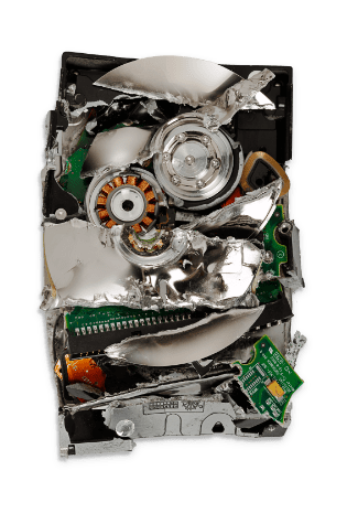 Shreds your entire hard drive into small pieces using industrial grade destruction equipment. The hard drive shredding process completely destroys the drive platters, mechanisms, and the electronic components rendering the data unrecoverable.